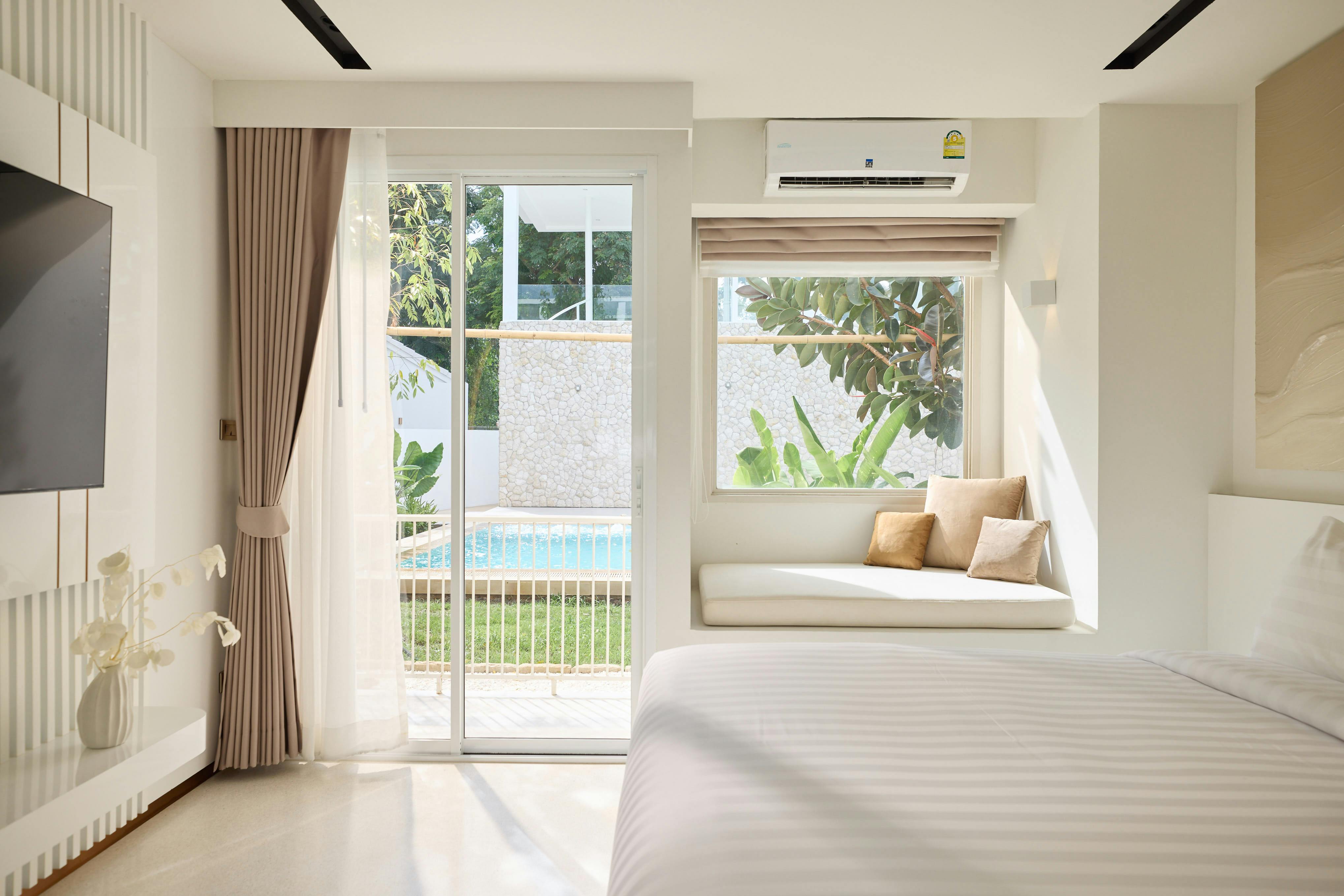 ห้องสตูดิโอ วิวสระว่ายน้ำและสวน ออกแบบห้องในโทนสีขาวทำให้ผู้เข้าพักรู้สึกอบอุ่น และผ่อนคลาย พร้อมด้วยสิ่งอำนวยความสะดวกครบครัน อาทิ ระบบความบันเทิงภายในห้องพัก, ระบบปรับอากาศ, สัญญาณอินเตอร์เน็ตไร้สาย, โทรทัศน์ LCD และสัญญาณดาวเทียม, อุปกรณ์ชงชากาแฟ, มินิบาร์, ตู้เซฟ, ไดร์เป่าผม, เสื้อคลุมอาบน้ำและรองเท้าเดินภายในห้อง และระเบียงส่วนตัวให้คุณได้ชมวิวบริเวณภายในโรงแรม