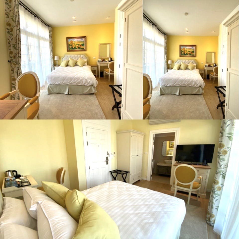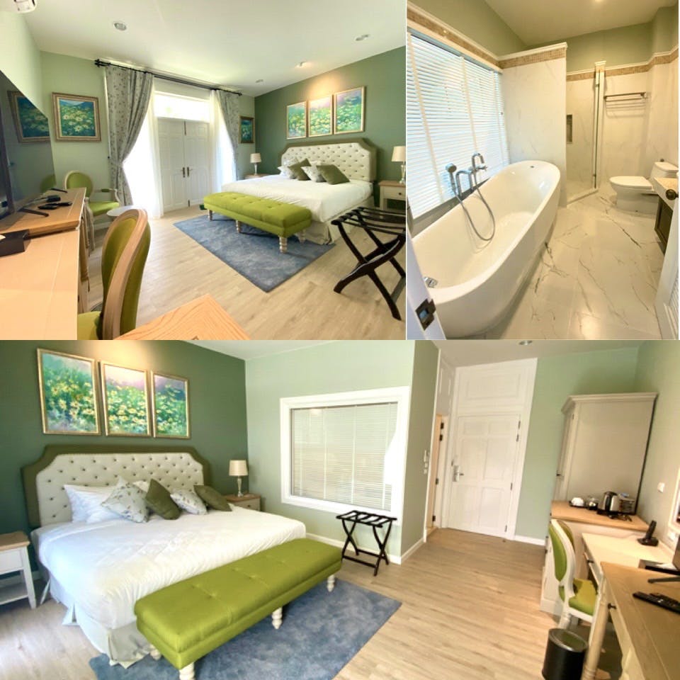 ห้องเเกรนด์ ดีลักซ์ พื้นที่ 50 ตร.ม. ภายในห้องพักตกแต่งอย่างหรูหราโทนสีเขียวพาสเทล อบอุ่นกลมกลืนเข้ากับธรรมชาติ จากระเบียงห้องพัก คุณจะได้ชื่นชมเต็มอิ่มกับวิวเขาแบบพาโนรามา ภายในห้องประกอบด้วย 1 เตียงคิงไซส์ พร้อมห้องอาบน้ำขนาดใหญ่ และอ่างอาบน้ำ รวมถึงด้วยสิ่งอำนวยความสะดวกครบครัน ทั้งเรนชาวเวอร์ เสื้อคลุมอาบน้ำ รองเท้าใส่เดินในห้องพัก เครื่องปรับอากาศ มินิบาร์ ไดร์เป่าผม โต๊ะทำงาน สัญญาณอินเตอร์เน็ตไร้สาย ให้คุณได้พักผ่อนอย่างเต็มที่